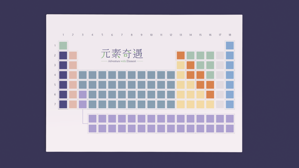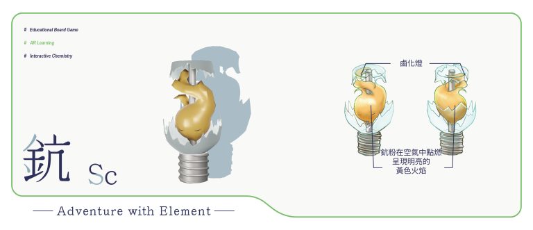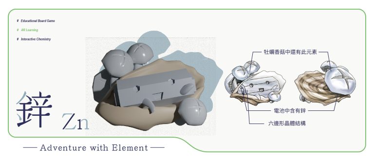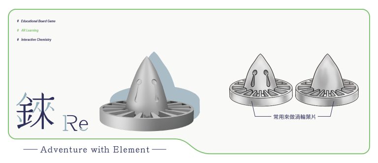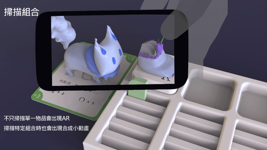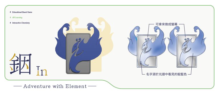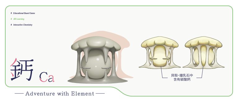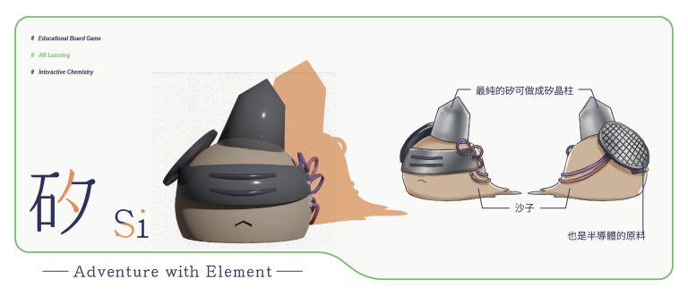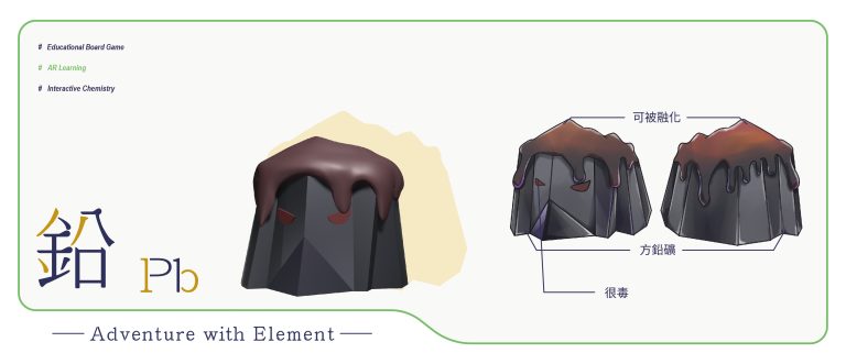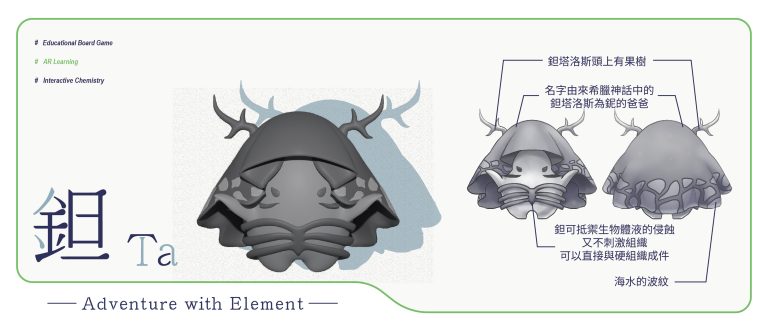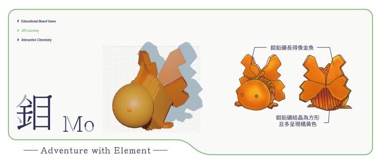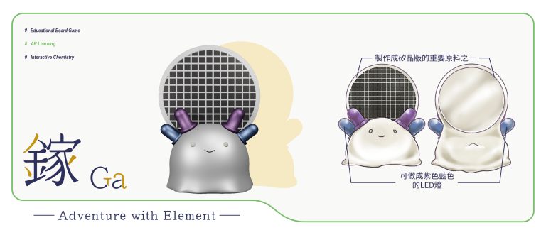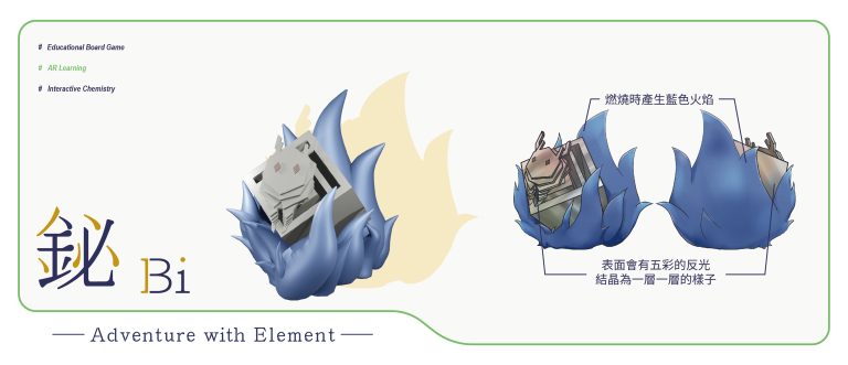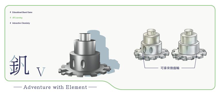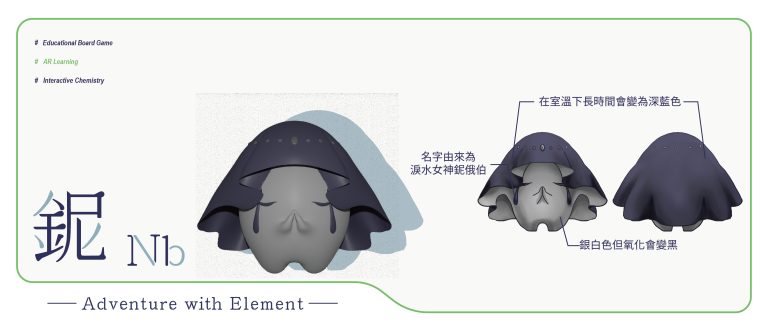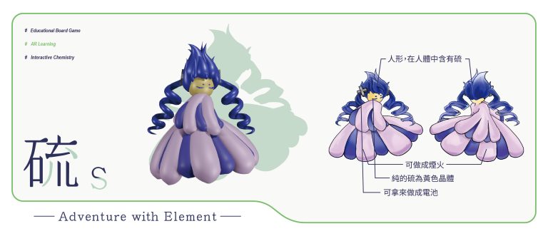 我們結合了AR,使玩家可以透過掃描棋子以及卡牌的方式去看到元素每位小精靈的樣貌和合成的小動畫,藉此增加玩家對該元素的印象。透過每個元素不同的化學性質、可製成的物品以及命名由來去繪製每位小精靈的樣貌,使每位元素精靈都成為獨一無二的存在。