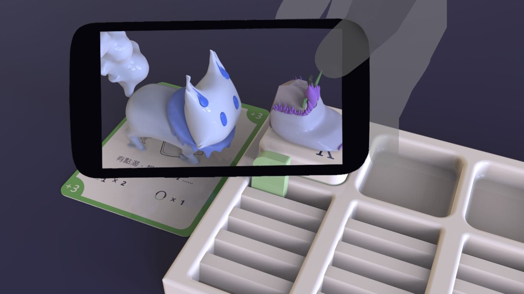 當利用手機或平板掃描精靈棋子、卡牌或是各種組合時會顯現出不一樣的AR