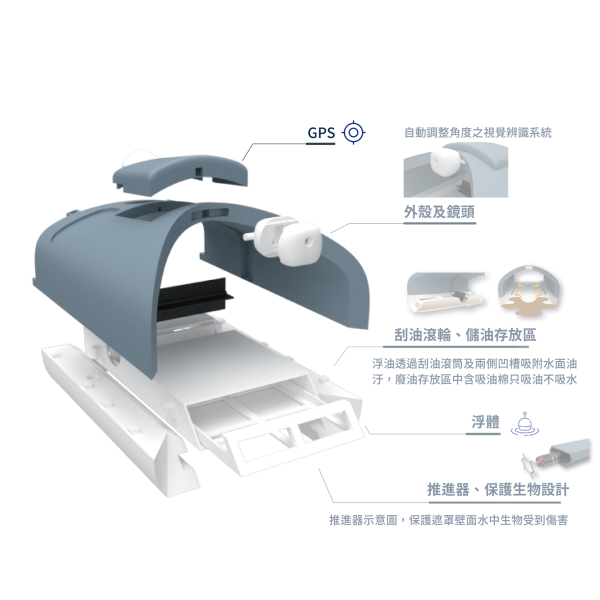 科技助力水域環保:運用智能技術解決港口與湖泊的水面污染問題減少人為破壞。 高效能智能清潔機器人:透過影像辨識技術,自動識別清理垃圾,並配備吸附裝置處理油污。 降低環境負擔與資源消耗:以智能化運作取代人工清理,提高效率並減少資源浪費。 促進永續發展與健康保障:確保水域清潔,維護生態平衡,守護人類健康與自然環境。